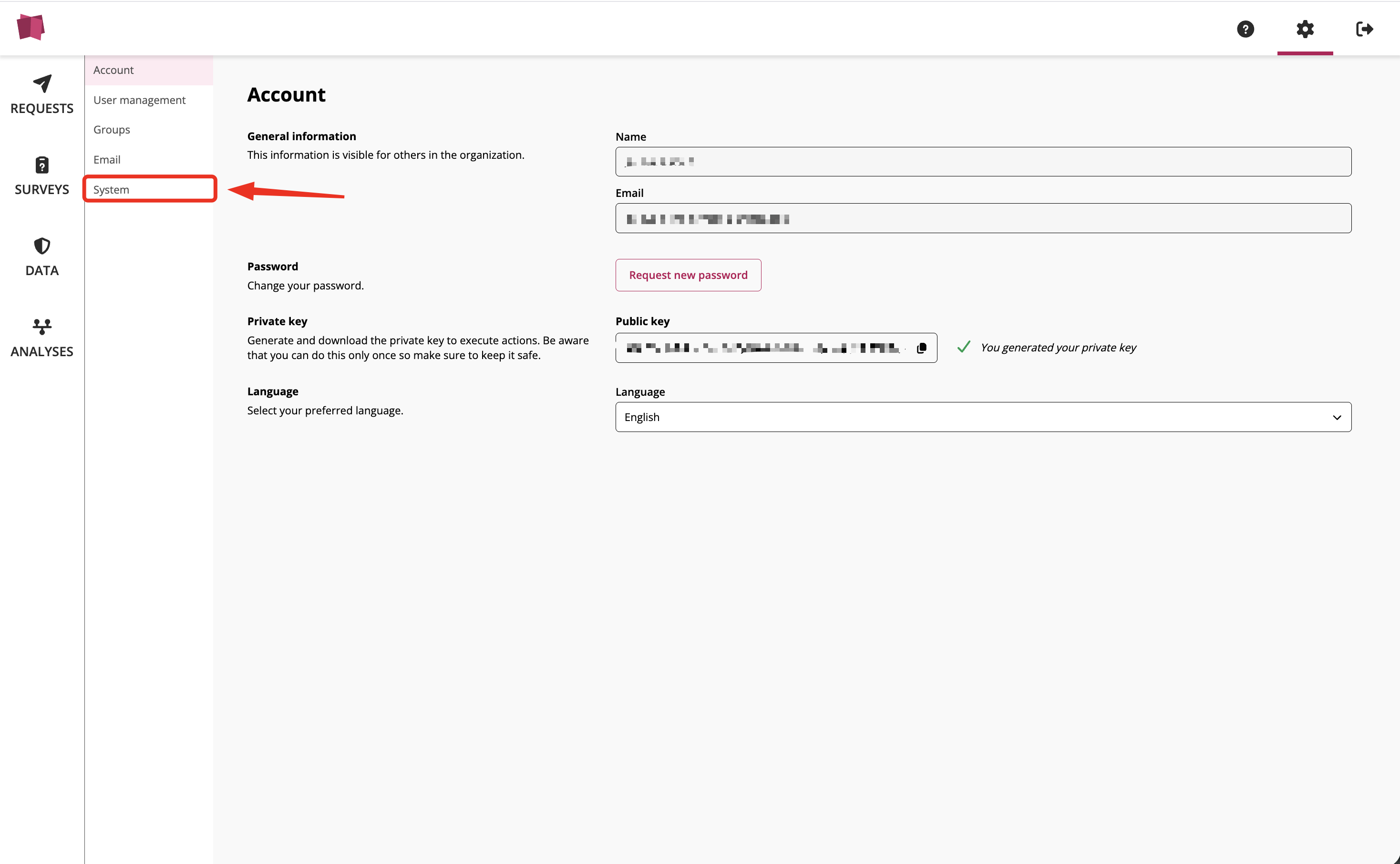 Select the System page within the settings menu.