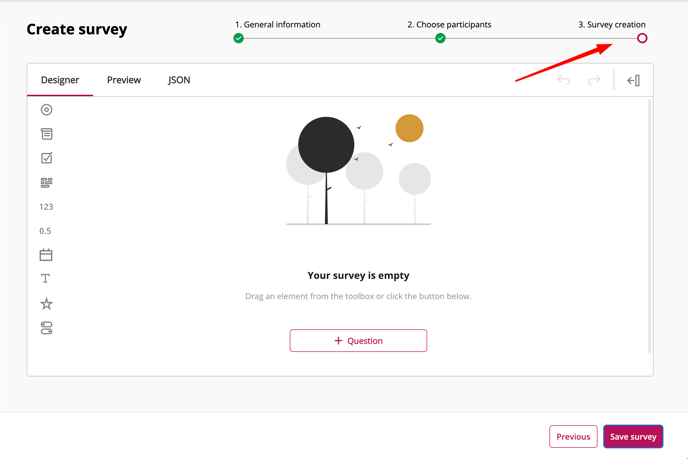 3. Fill in the survey details and go to step 3 of the survey creation flow.