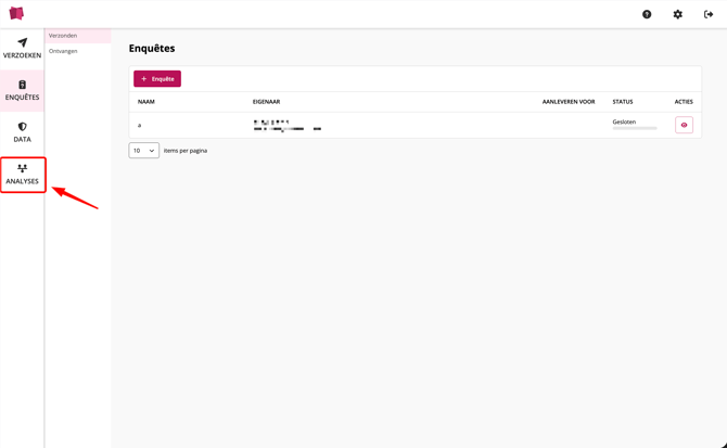 - Log in en ga naar de pagina ‘Analyse’ via de navigatiebalk.