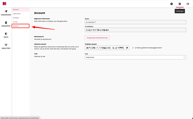 - Selecteer de pagina Systeem in het instellingenmenu.